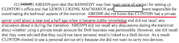 A review of those documents conducted by The Daily Caller shows that Mills and Abedin told Strzok and Laufman that they were not aware of Clinton's server until after she left the State Department.